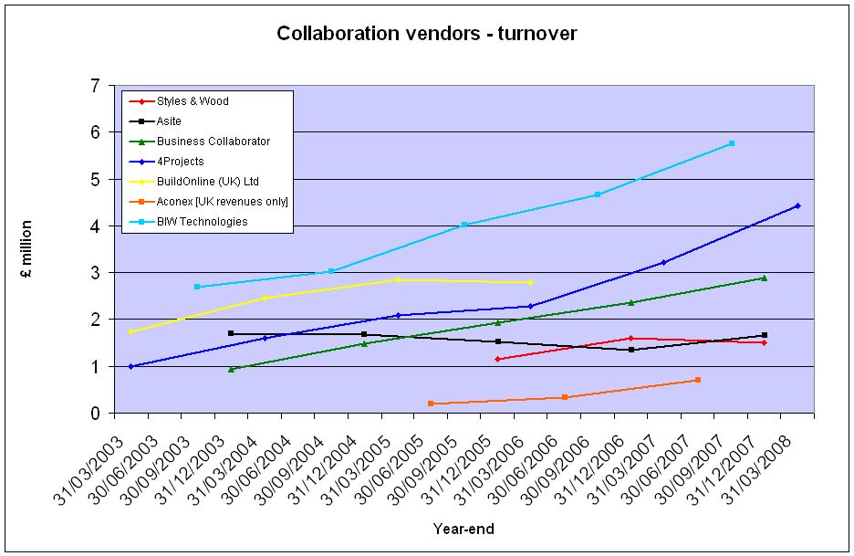 […] UK-based construction collaboration software-as-a-service (SaaS) technology vendor BIW Technologies [my employer] grew its turnover 27% to £7.3 million in the year to 30 September 2008, it announced yesterday, with profits more than doubling to £1.1 million; the value of unrecognised revenues in the order book was up to £12.77 million (see news release). On both turnover and profitability metrics, this was an acceleration on BIW’s 2007 performance. […]