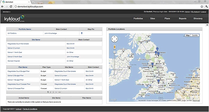 Together, they established kykloud (pronounced “k-eye-kloud” apparently) in early 2011 and – with venture capital funding from Northstar Ventures – set about designing a secure cloud-based platform and toolset for anyone managing the life time costs of major infrastructure programmes or large property portfolios. Its intended users will extend from the boardroom level where directors may monitor the performance of 100s of sites, down to the operational teams responsible for managing individual facilities, and the first customers (including asset-owning enterprise users, project managers and contractors) began using the system in late 2011 – just as kycloud finally unveiled its website and started recruiting a sales team.