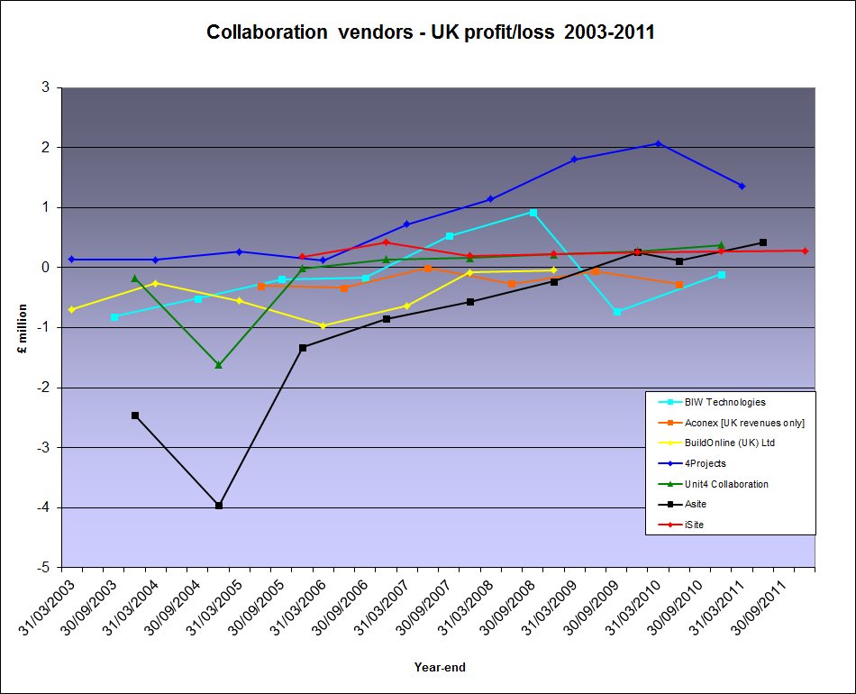 Looking specifically at Nottingham-based iSite, the information services business grew revenues 18% from £1.242m to £1.460m (the best result since 2007 – see above), with a profit of £0.278m (up £7k from 2010; post) and margins a bit tighter at 19%. iSite (previously known as StoreData) has been consistently profitable since 2005 (below).