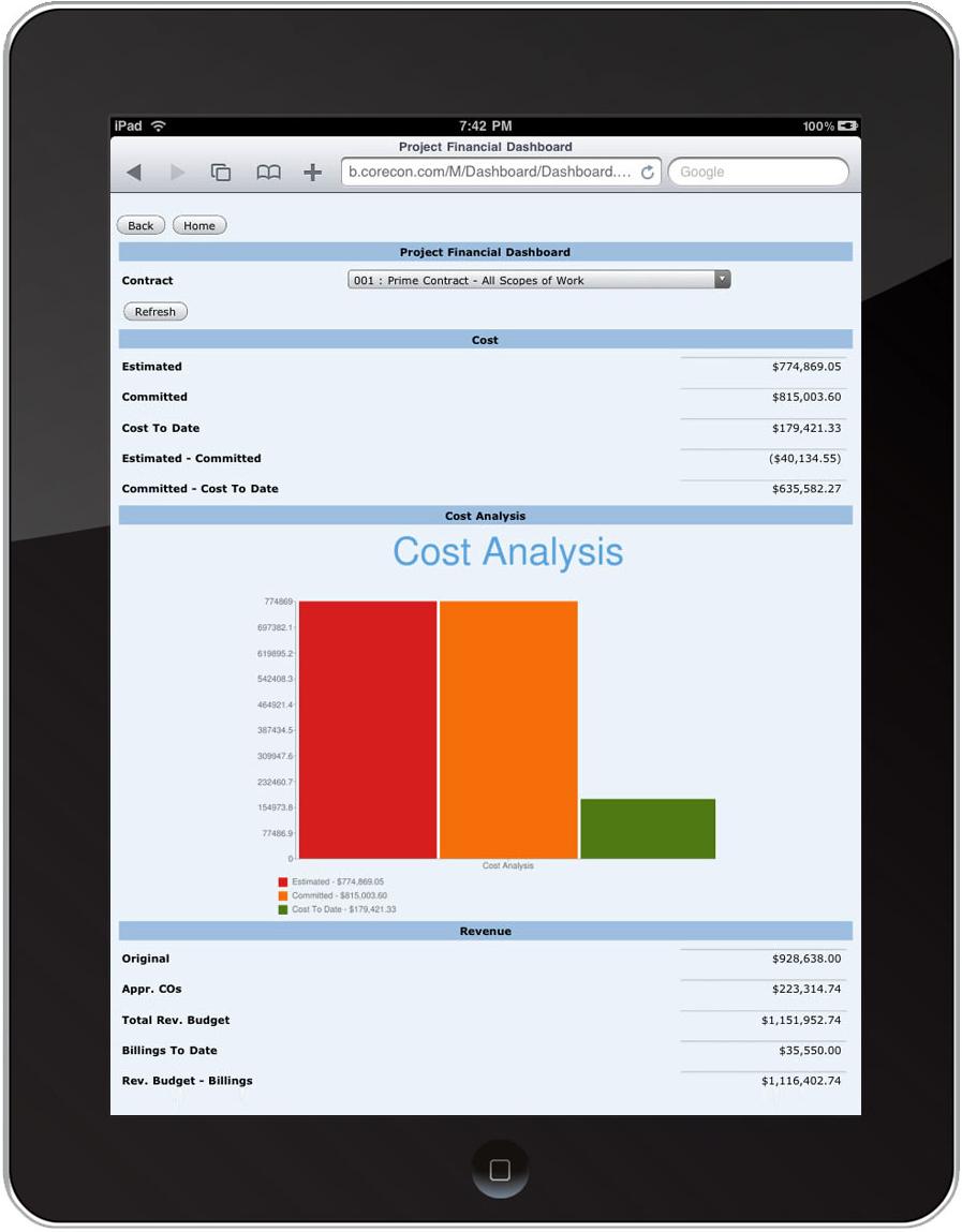 “… subscribers can already access and capture critical project information when using an Apple, Blackberry, Google Android, Palm or Windows 7 device. In our latest upgrade, Apple iPad users now have complete access to all of the functions, features and information in Corecon V7 when using their Apple device in the field or office.”