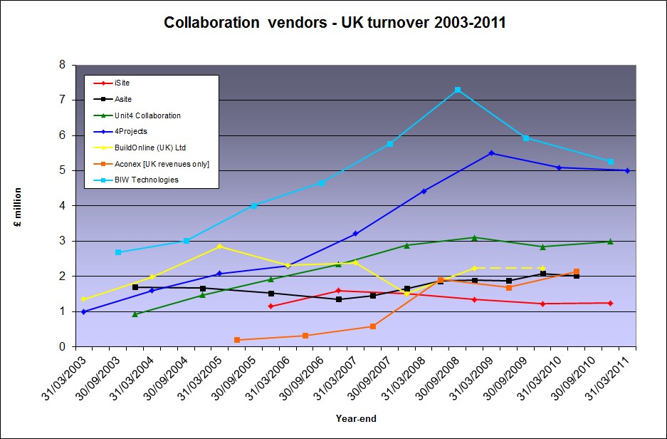 This performance is similar to that of other SaaS vendors in this sector (eg: 4Projects – post; BIW – post; Unit4Collaboration – post), who in recent years have struggled to maintain previous turnover growth, and have seen profits hit due to the continued impacts of the global financial crisis. With clients cancelling or postponing construction projects, there are fewer schemes to support; and there is pressure on vendors to price their services competitively to get adopted on those customers’ schemes that do proceed.