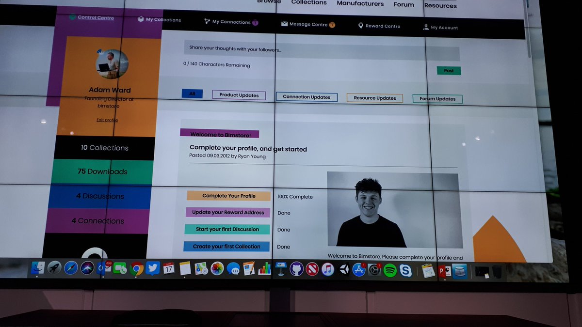 Aspects of the new site’s operation resemble familiar social media platforms such as LinkedIn, with abilities to create personal profiles and to connect to and message individual users, and so build communities, both generic and specialist. In a live demo, Ward showed “curated collections“: bundles of content (either private or public) created within bimstore to support particular communities or specialisms – temporary works, retro furniture, etc. The platform also offered a few gimmicks to encourage communication and engagement – t-shirts, special status (“pineapple”, “veteran”) for users of the site’s discussion forum, etc.